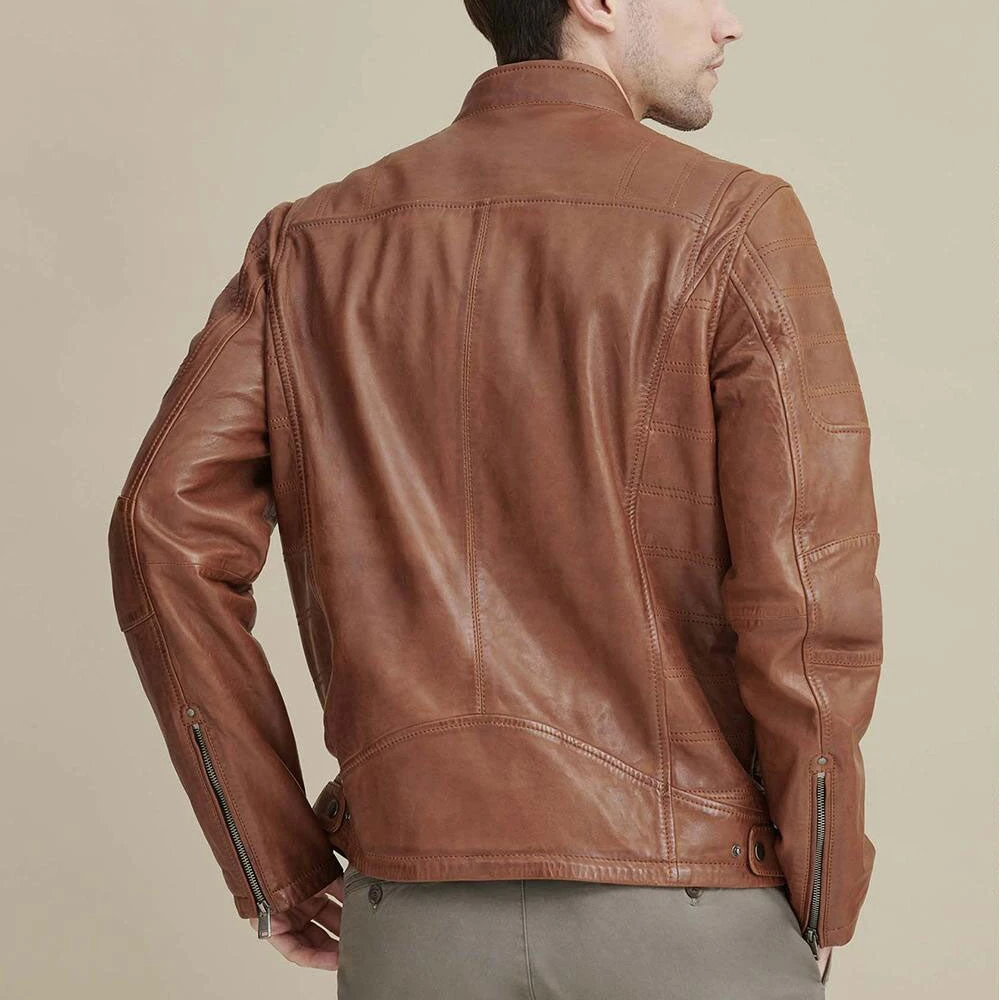Men Brown Biker Leather Moto Riding Motorcycle Jacket