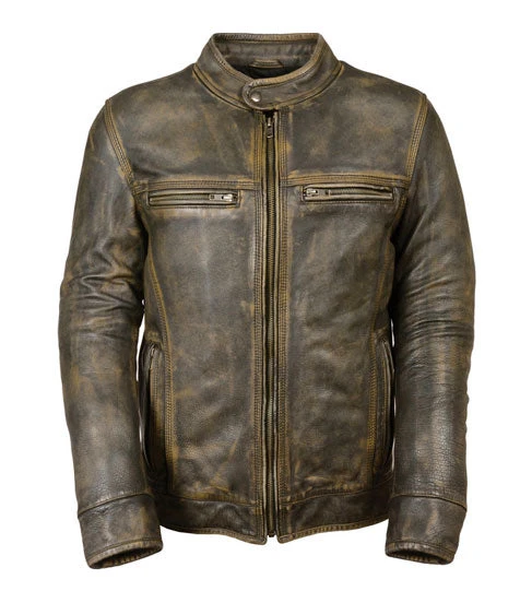 Shearling leather provides comfort and style with their leather apparel. This Men’s Distressed Scooter Jacket is both versatile and stylish. Wear with the thermal liner for extra warmth or unzip it and ride without. There are lower hand pockets along with built in dual side pockets for weapons. Ride in style and protect yourself in this Milwaukee Leather jacket!