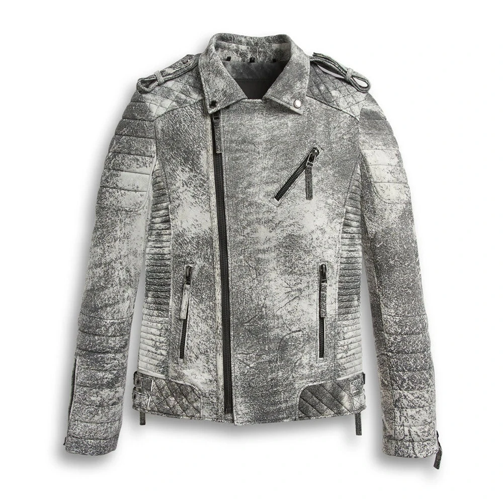 Men Storm Grey Biker Leather Motorcycle Riding Moto Jacket