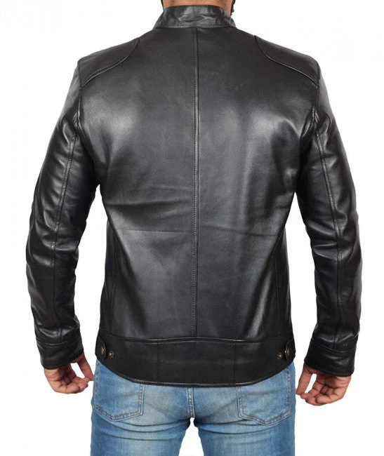 This black lambskin leather jacket is an ultimate trendsetter. It comes with a simple and classy design and features, front zip fastener, snap button collar, and a modern fit.
