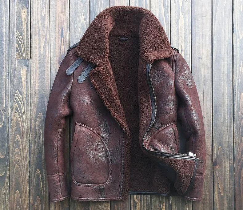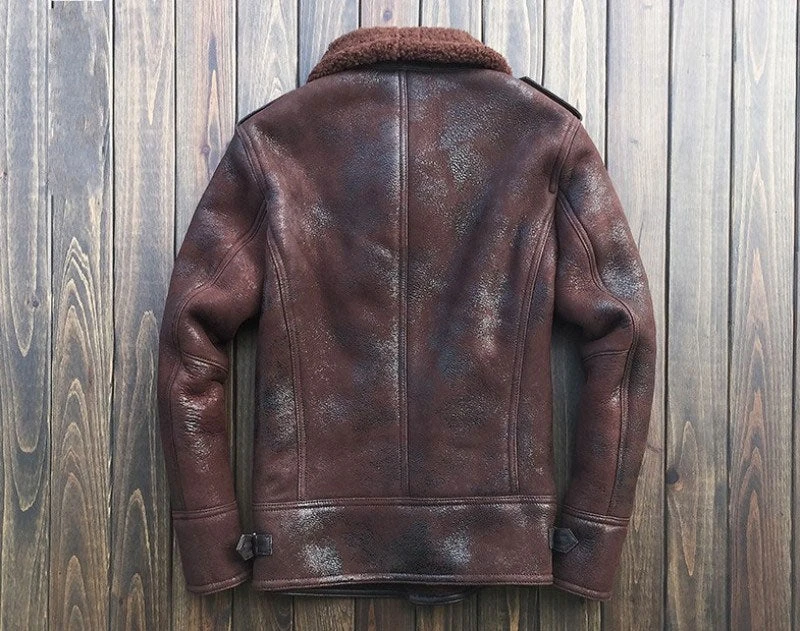 This suede leather jacket is waxed to give it a multi shade color. Made out of pure sheepskin leather, this sheepskin jacket is warm and comfortable to the fullest.