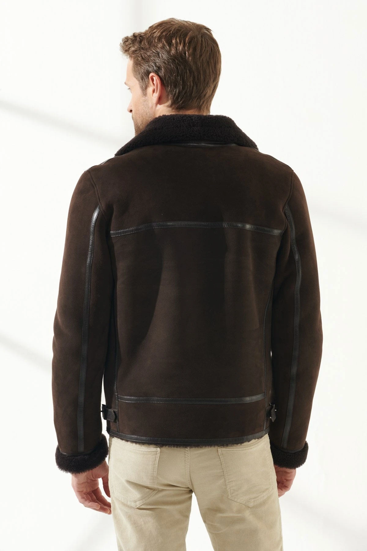 Custom Made Men Aviator Brown Shearling Jacket
