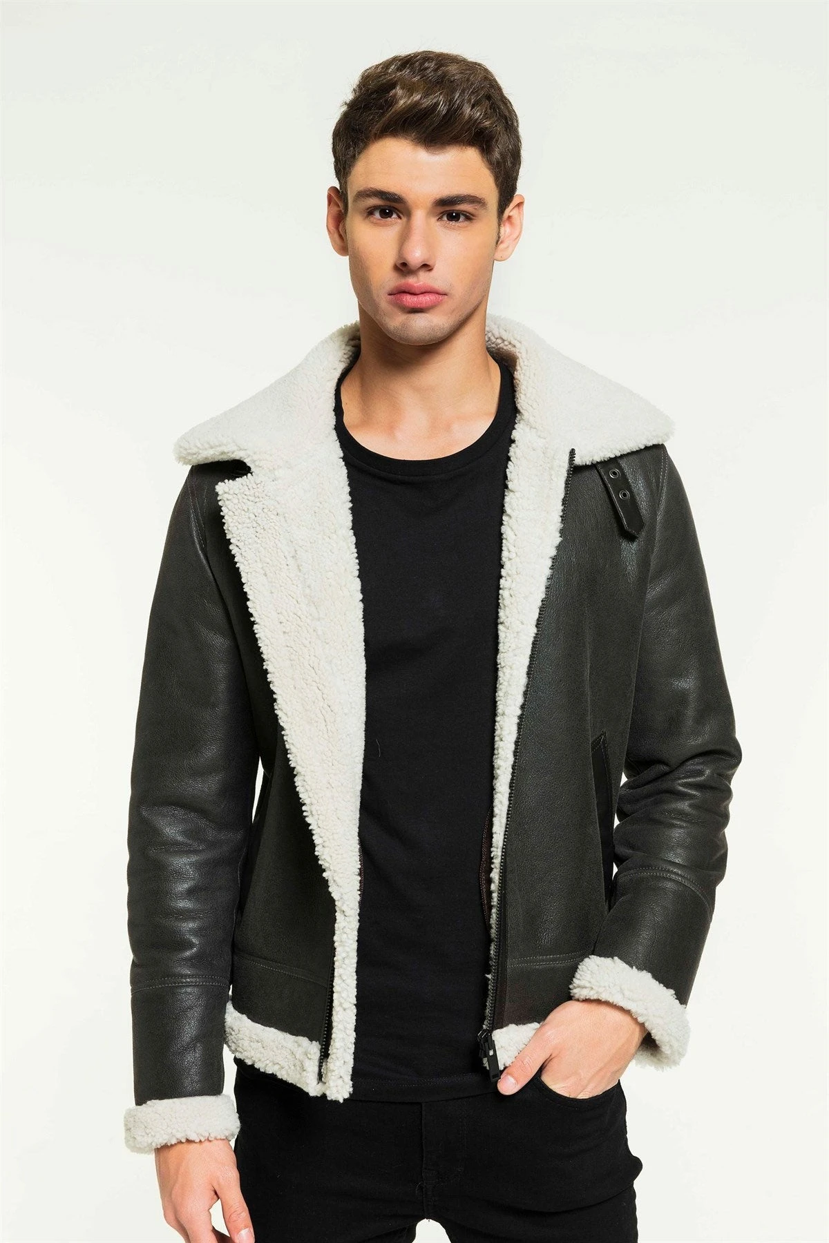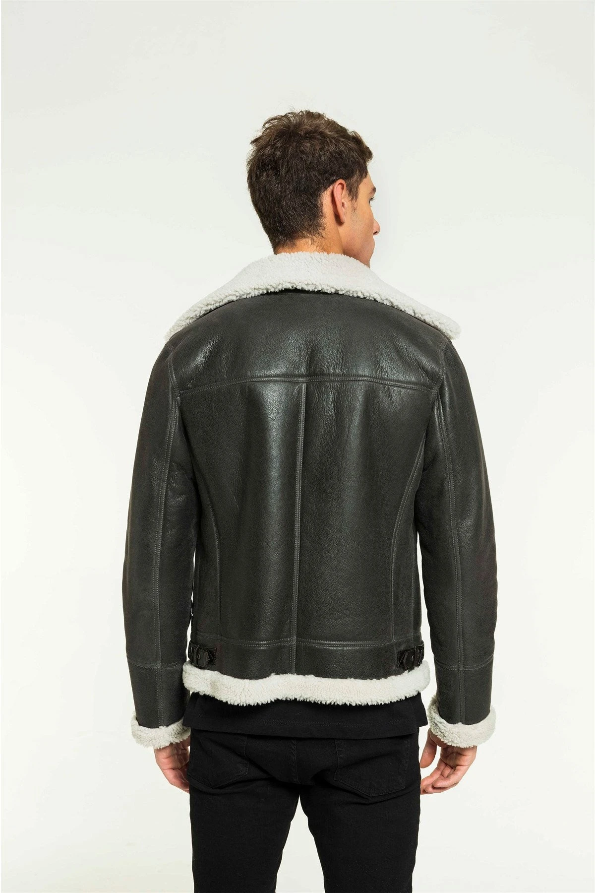 Custom Made Men Aviator Grizzly Grey Shearling Jacket