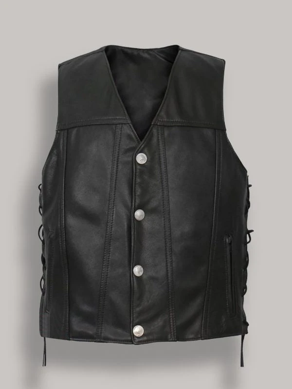 SKU: C2HLY 61387033150991 Category: Black Jackets Tags: Men Buton Leather Vest, Men Leather Nickel Snap Vest, V-Neck Leather Vest