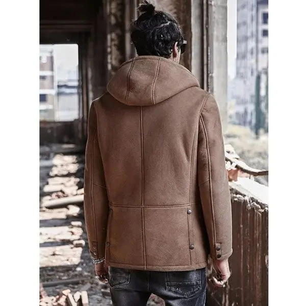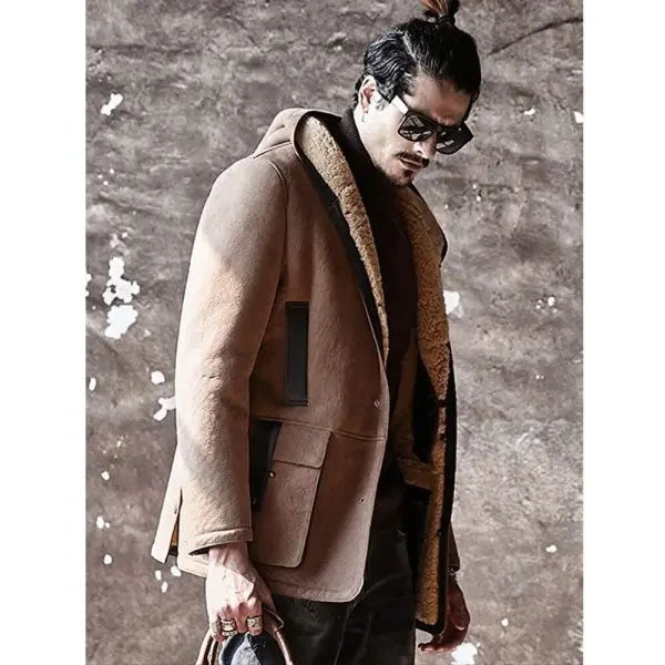 New Men’s Winter 2022 Shearling Fur Hooded Suede Leather Bomber Long Jacket Trench Coat – Shearling Trench Coats