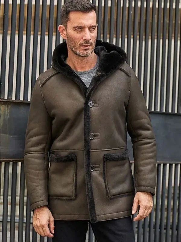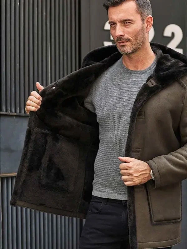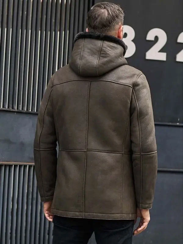 Custom Made Mens Fur Coat Green Leather Overcoat Hooded Wool Parkas Warmest Winter Outwear