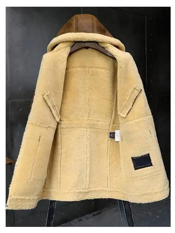 Custom Made Mens Hooded Sheepskin Shearling Leather Jacket