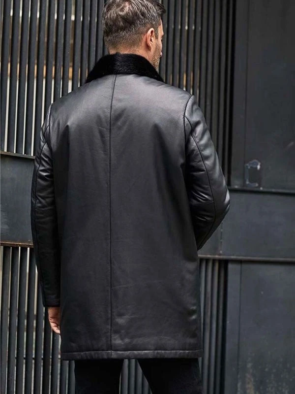 Custom Made Mink Fur Coat Long Fur Outwear Black Leather Overcoat