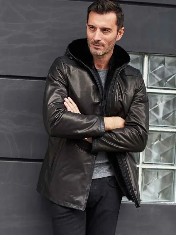 Custom Made Mink Fur Overcoat Oversize Winter Outwear Long Black Leather Jacket