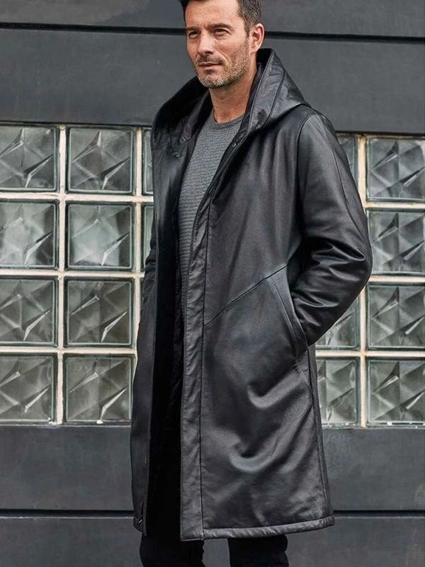 Custom Made Overcoat Warm Down Jacket Black Leather Parkas Oversize Winter Outwear