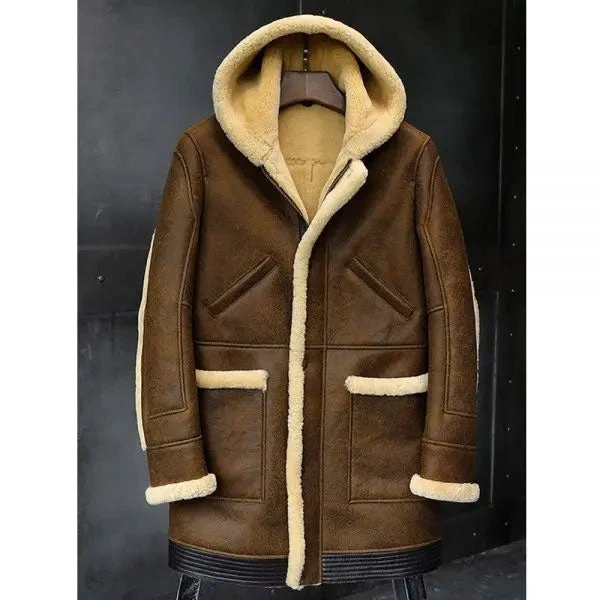 Custom Made Sheepskin Coat Hooded Leather Jacket Fur Coat Mens Winter Coats Long Fur Jacket