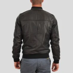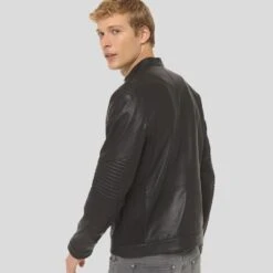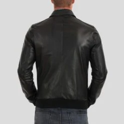 Shearling Leather Jero Black Bomber Lambskin Leather Jacket
