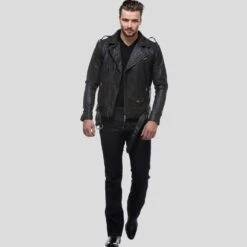 Shearling Leather Cain Black Slim Fit Biker Leather Jacket