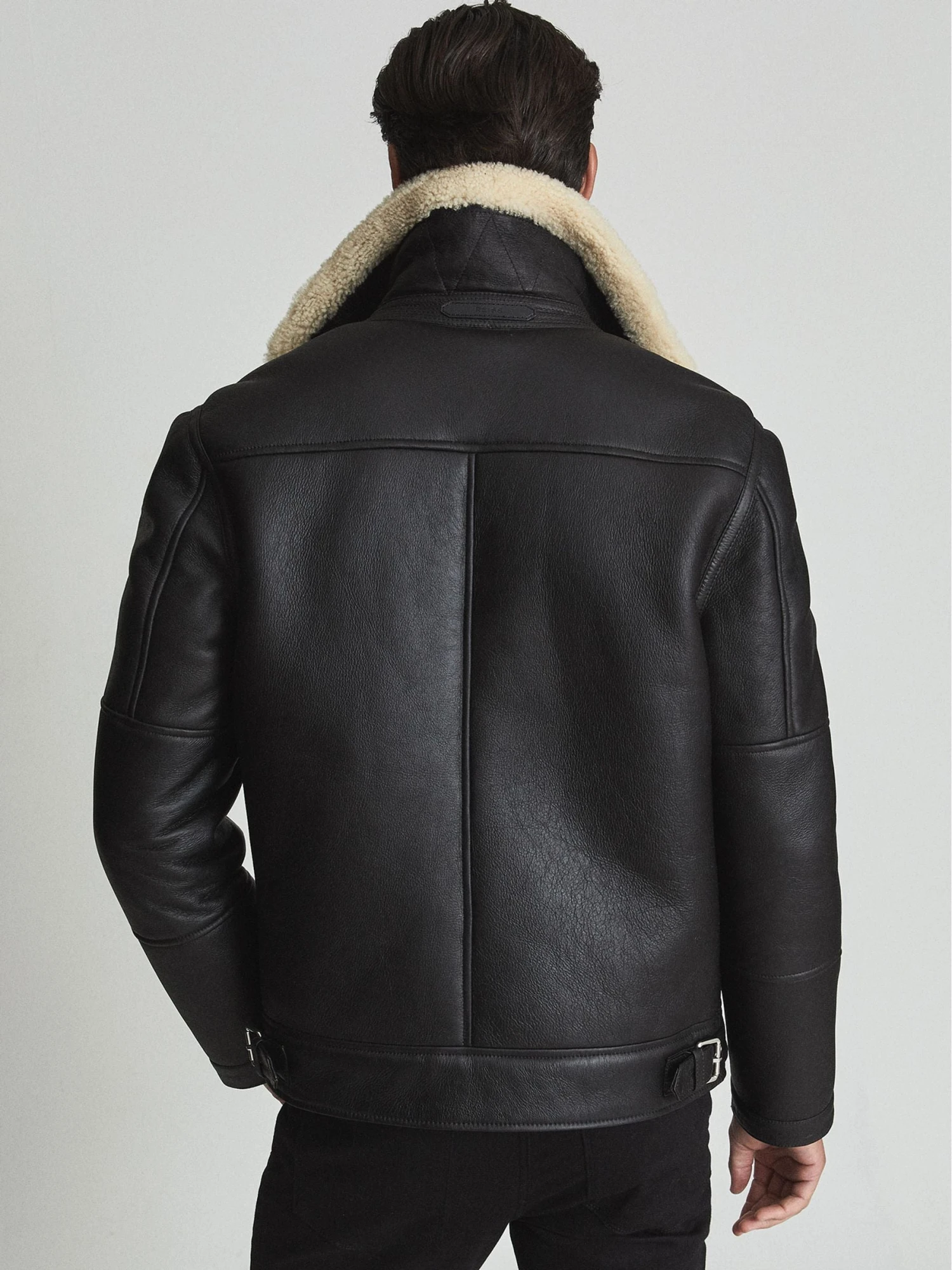 The Black Shearling Aviator Jacket is made to a pilot outline from the best Spanish shearling. It’s built with an unbalanced zip front affixing. Wear it over a roll-neck jumper for a considered, raised layered alter. Spanish shearling. Twofold throat hook. Zip securing. Side slip pockets. Side tabs. Woven scruff logo. Crisscross undercollar sewing. The model is wearing a size M.