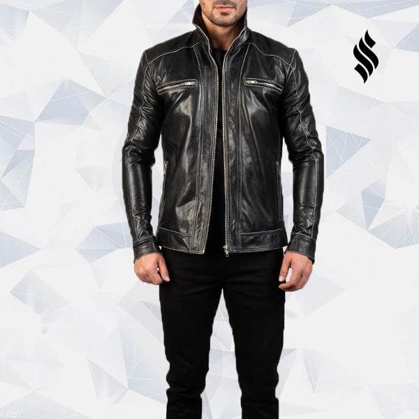 Shearling Leather presents all new Hudson Black Leather Biker Jacket. Ride in shinny Black biker leather jacket. This classic masterpiece has been in style since early 21st century and Shearing Leather knows how to provide you with in trend articles!