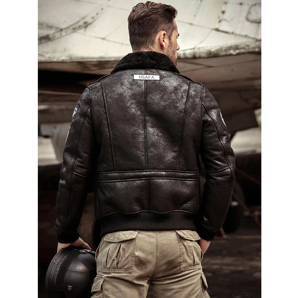 Men RAF B3 Sheepskin Suede Black Leather Shearling Bomber Jacket