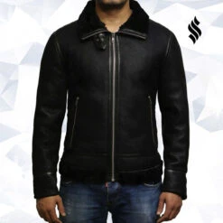 Men’s Aviator Black B3 World War2 Real Shearling Sheepskin Flying Jacket