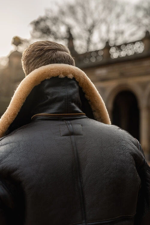 Stay warm and one step ahead with the Men’s B3 RAF Aviator Sheepskin Shearling Leather Jacket. This leather jacket is made of premium sheepskin leather which is soft and keeps you comfortable while the shearling lining is source of warmth. The adjustable belt at waist and collars make it easy for you to have your own custom fit while big outer pockets have alot of space for your essentials. This apparel follows b3 bomber jacket style.
