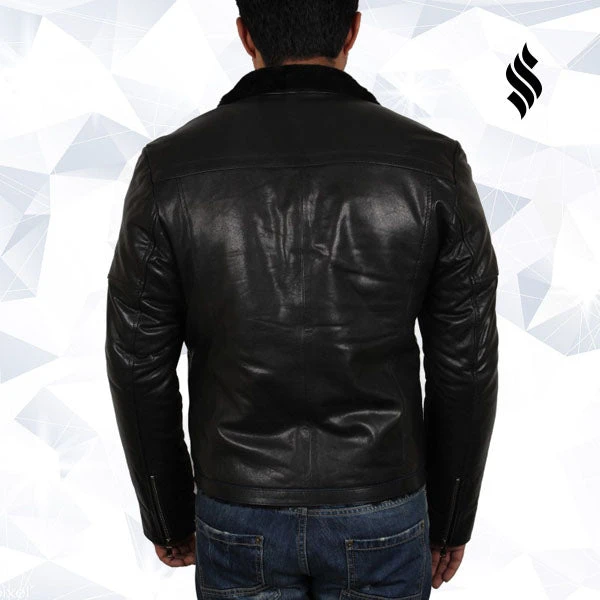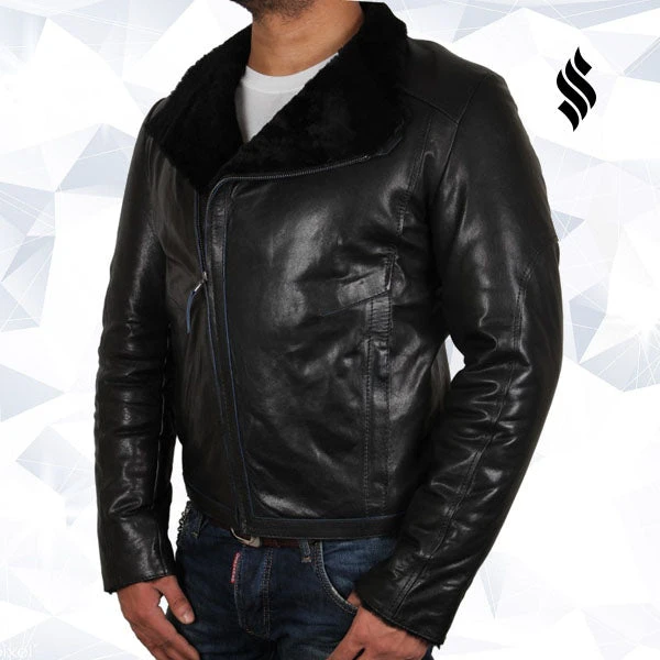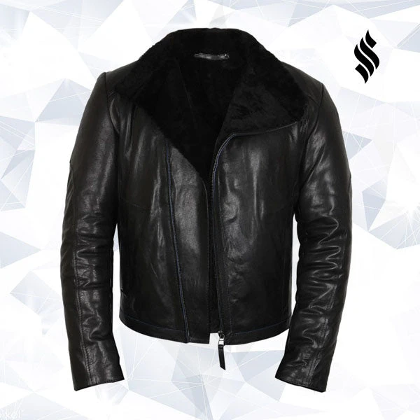 A top quality real leather jacket is eye-catching. This shearling leather jacket is beautifully combined with thick fur lining, an impressive blend of trend and tradition with a purpose to counter severe cold weather conditions. Specifically designed to give the wearer a trendy and classy look along with comfort and warmth. The leather jacket is crafted from the finest quality real leather tailored with perfection and class. Thick leather on the outer and thick inner fur makes it a gift for winters. The Fleece-lined interior is incredibly warm and cozy providing real warmth and protecting your body from tough weather conditions.