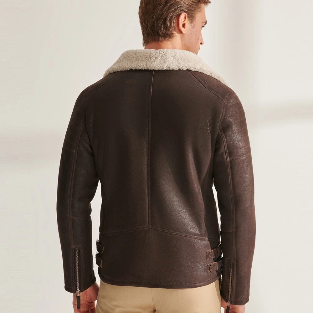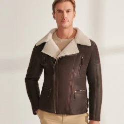 Men’s Brown B3 Pilot Sheepskin Shearling Biker Aviator Jacket