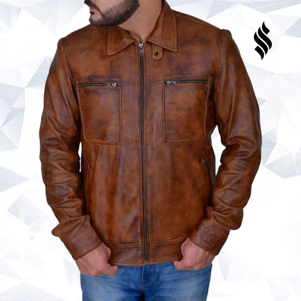 When we talk about leather jackets, men have a lot of variety in it. You have got biker leather jacket, bomber jacket and many more but the most trending leather jacket style in town these days are distressed leather jacket. These jacket are waxed all over to make them look like a tough and macho style. Street fashion lovers are just enjoying these jackets and trying it out with different outfits. Brown Distressed Leather Jacket is the most favorite leather jacket among men fashion world. Shearling Leather presents you this dapper looking distressed leather jacket which is guaranteed to make you look sleek in almost any outfit.