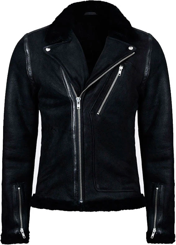 In this winter fashion is in trend In keeping with this trend we offer a mens black biker leather jacket with fur. This shearling jacket gives a lovely look and keeps your body warm when you wear it on a regular day. We use the high quality material in our winter outwear. Features in the leather jacket Premium quality fur, Regular Fit, and black color.